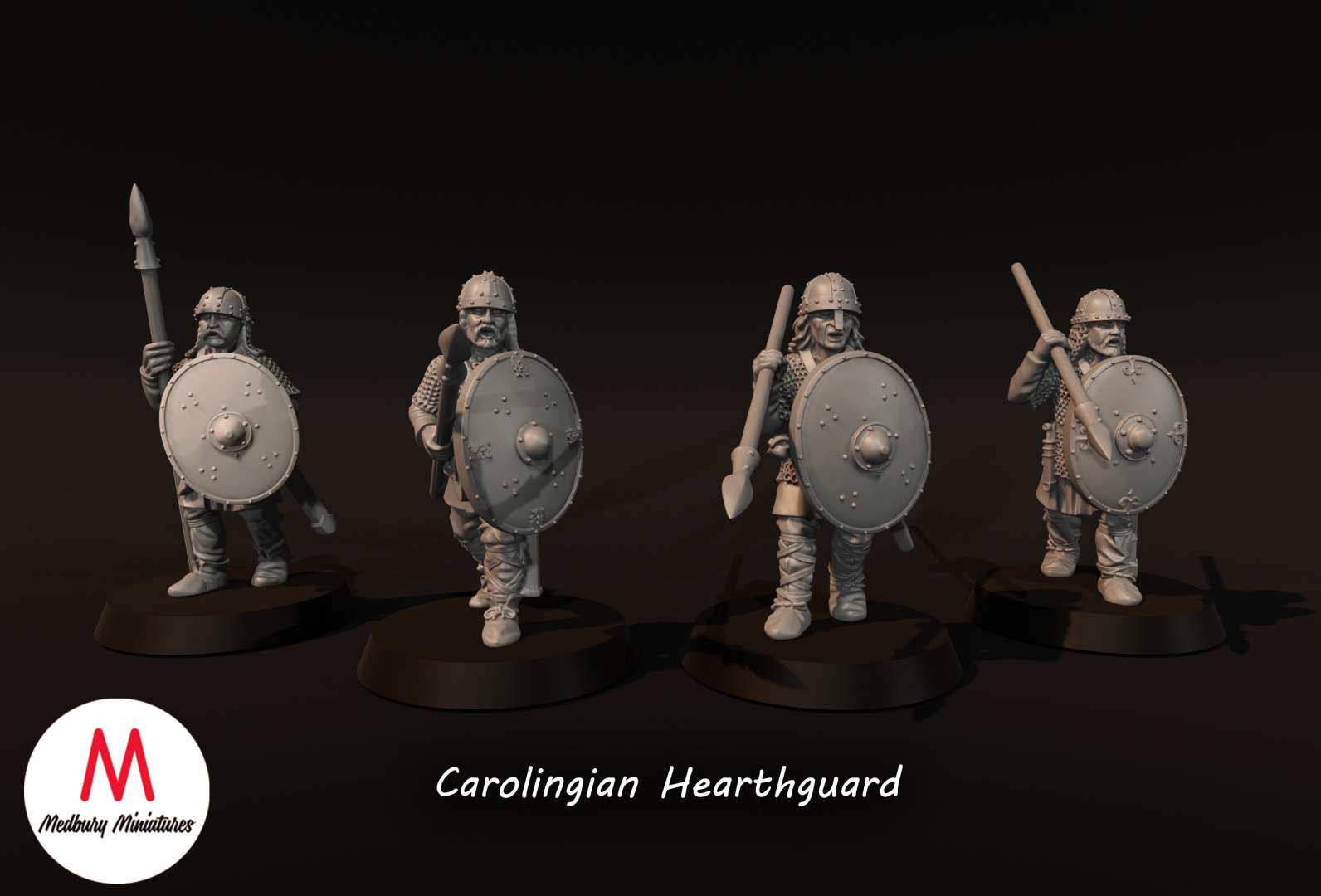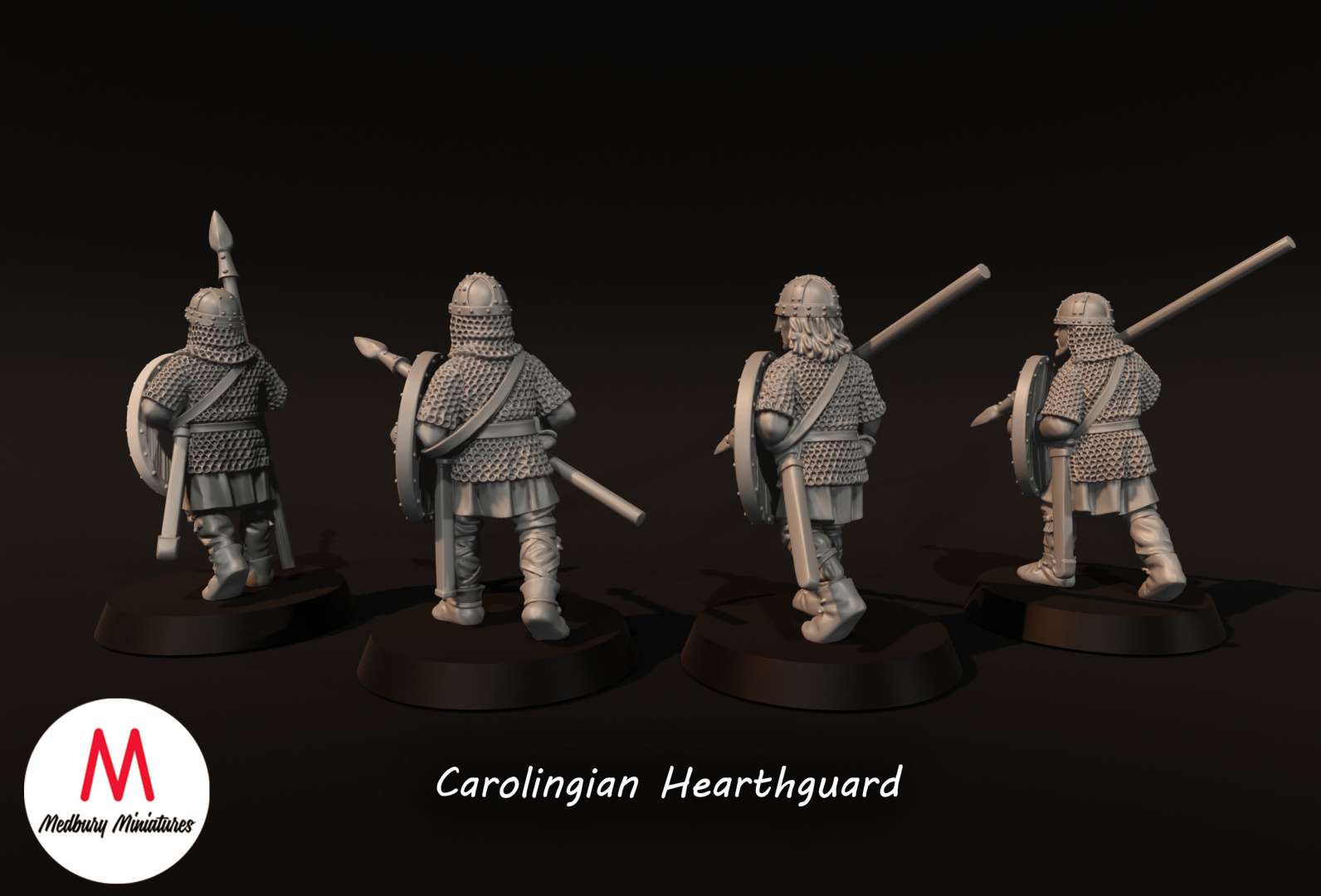 El pack contiene 4 miniaturas de Guardia Real Carolingia, la imagen muestra los archivos stl.
