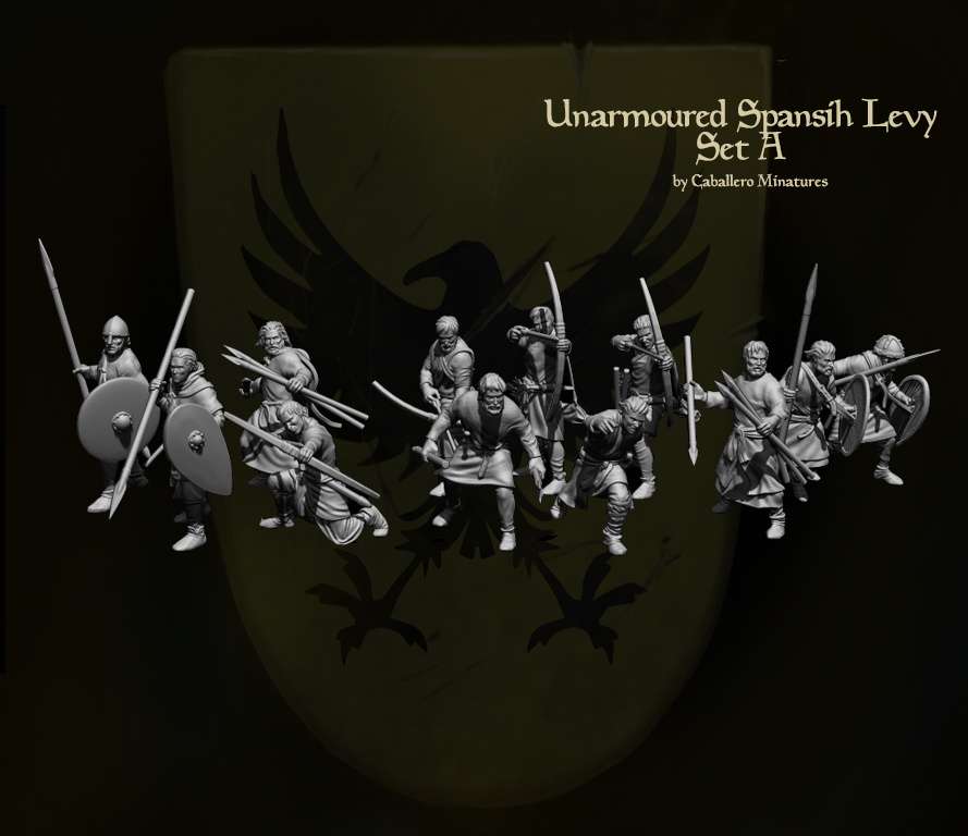 El pack contiene 12 miniaturas de Leva cristiana, cuatro equipados con arco, cuatro con jabalina y cuatro con lanza y escudo, la imagen muestra los archivos stl.